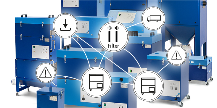 Networked via Ethernet, these new extraction and filter units can order their own filters and spare parts, as well as troubleshoot or download updates.